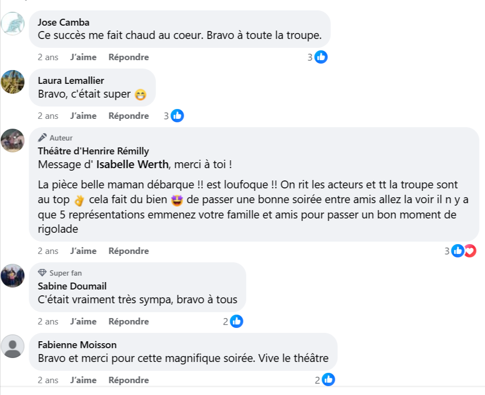 Odile vient s’installer chez son fils Denis suit à un dégât des eaux pour le plus grand plaisir de sa belle-fille Sylvie. La cohabitation est un peu compliquée et les remarques fusent de toutes parts au point que vous vous retrouvez dans plus d’une de ces situations; Cet équilibre fragile bascule quand Sylvie découvre par hasard le trafic de sa belle-mère. Ah ces belles-mères… toujours pleines de surprises !