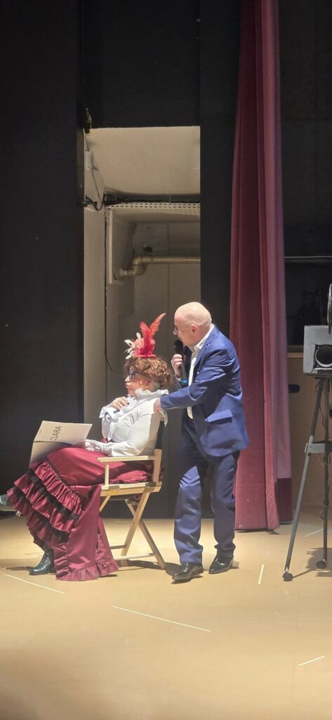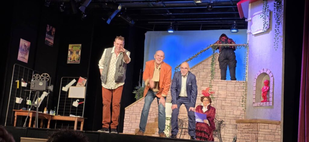 Le tournage d’un film sur une grande actrice morte sur scène, abattue en pleine représentation par son mari trompé. Ce tournage pourrait bien se passer… si le réalisateur ne tournait pas autour de la jeune première, qui le trompe avec l’assistant-réalisateur, qui veut réaliser son premier film avec la jeune première et qui le propose au producteur du film, qui n’est intéressé que par l’argent de sa femme, qui est l’actrice principale du film ! Ajouté à Ça un premier rôle qui rayonne trop, une maquilleuse étrangère, une chef machiniste bourrue et des techniciens fournis prêts à dégainer leurs instruments !!